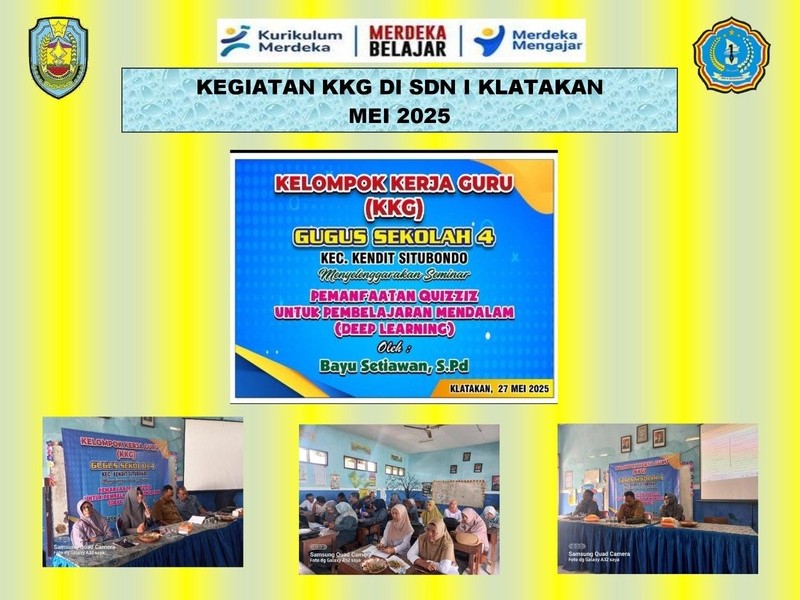 Pada tanggal 27 Mei 2025, suasana pembelajaran inovatif menyelimuti SD Negeri I Klatakan saat menjadi tuan rumah acara Kelompok Kerja Guru (KKG) Gugus 4 Klatakan. Acara ini menjadi wadah berharga bagi para pendidik untuk menggali potensi teknologi dalam meningkatkan kualitas pembelajaran. Salah satu sorotan utama adalah pemaparan inspiratif dari Bapak Bayu Setiawan, S.Pd. mengenai pemanfaatan Quizizz untuk pembelajaran mendalam (deep learning).